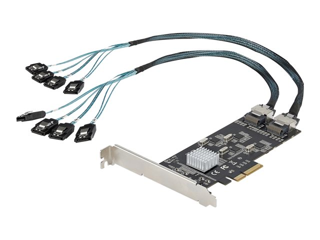 This 8-port SATA III (6Gbps) controller enables you to add eight SATA 6Gbps hard drives (HDDs) or solid State Drives (SSDs) to your computer system or server via an available PCIe x4 card slot. The card supports SATA III and PCI-Express Gen 2 Specifications and four SATA controllers to deliver a high-performance data storage solution.