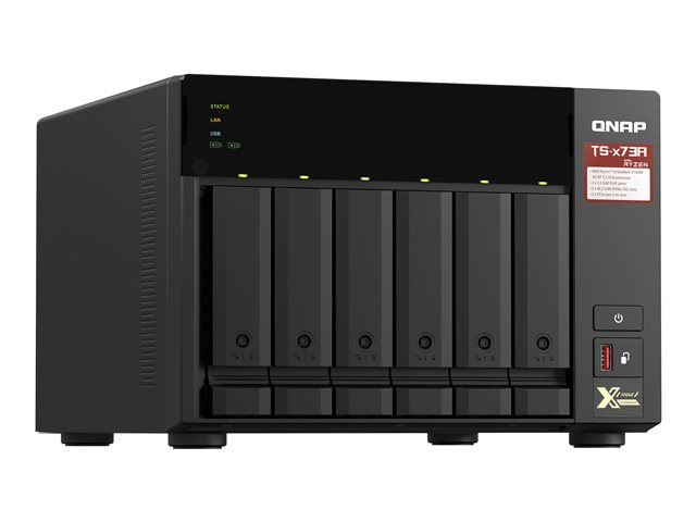 The TS-673A features two 2.5GbE RJ45 ports and two PCIe Gen 3 slots for you to flexibly deploy 5GbE/10GbE networks. Two M.2 NVMe SSD slots for Qtier Technology and SSD Caching enable constant storage optimization. The TS-673A supports QTS and QuTS hero, allowing users to flexibly switch operating system based on their requirements.