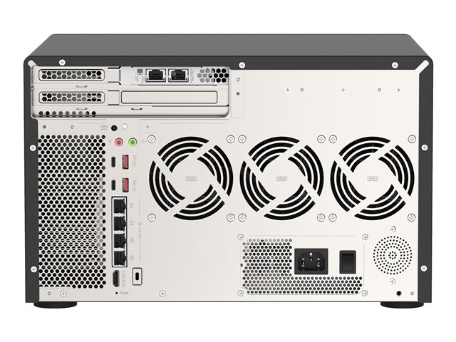 The high-capacity TVS-h1288X features a powerful Intel Xeon W processor and allows for installing two QNAP QXP-T32P Thunderbolt 3 PCIe expansion cards (sold separately) to attain four Thunderbolt 3 ports, making it a perfect match for Thunderbolt-equipped Mac and Windows users for high-speed media collaboration. The built-in 10GbE and 2.5GbE connectivity supports Port Trunking and failover to further satisfy bandwidth and reliability demanding business applications. Running the ZFS-based QuTS hero operating system, the TVS-h1288X supports block-level inline data deduplication and compression, near-limitless snapshots, real-time SnapSync, and read/write cache technologies, helping your business achieve reliable service-level agreement performance, from creative workflows to file server, virtualization server, and efficient file backup and recovery applications.