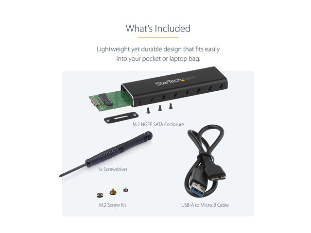 StarTech.com M.2 SSD Aluminum Enclosure to USB 3.0 (5Gbps) with UASP - M.2 NGFF SATA with B Key & B+M Key - External M.2 Portable Enclosure (SM2NGFFMBU33) - Drevkabinett - M.2 - SATA 6Gb/s - USB 3.0 - svart SM2NGFFMBU33
