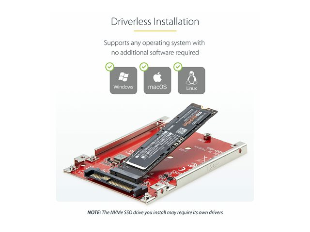 Change the form factor of a 2242, 2260, or 2280 M.2 NVMe drive while maintaining PCIe Gen 4 read and write speeds. This adapter has been designed with no chipset to maintain performance when adapting an M.2 drive to a 2.5-inch form factor.