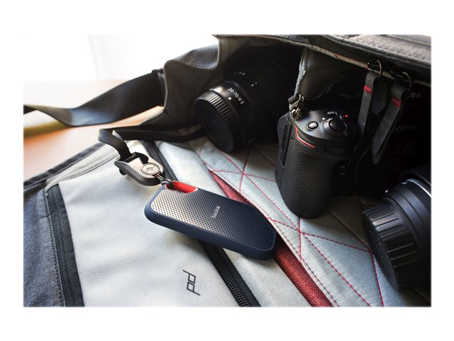The rugged SanDisk Extreme Portable SSD delivers high-speed transfers with up to 550MB/s read speeds. This makes it perfect for saving and editing hi-res photos and videos. With an IP55 rating, it also stands up to rain, splashes, spills and dust.