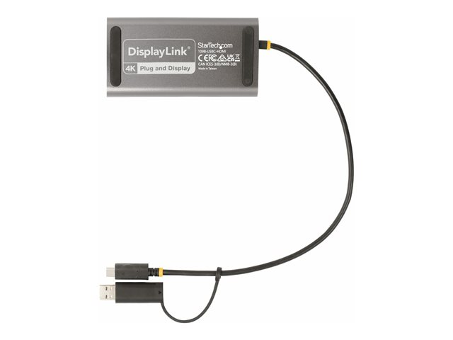 StarTech.com USB-C to Dual-HDMI Adapter, USB-C or A to 2x HDMI, 4K 60Hz, 100W PD Pass-Through, 1ft (30cm) Built-in Cable, External Video Graphics Adapter - USB to HDMI Multi-Monitor Converter for Laptop (109B-USBC-HDMI) - Video adapter - TAA-samsvar - USB-type A, USB-C hann til 2 x 19 pin HDMI Type A, USB-C hunn - 30 cm - grå - 4K-støtte, aktiv