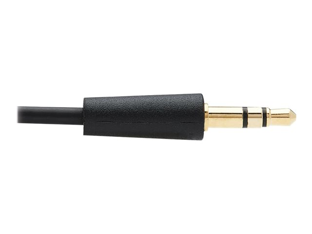 Two 3.5 mm stereo cables connect external multimedia speakers, a microphone or headphones.
