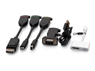 Antall inkludert x Type | Video adapter - Mini DisplayPort (hann) til 19-pin HDMI type A (hunn) Video adapter - 20-pins DisplayPort (hann) til 19-pin HDMI type A (hunn) Video adapter - 24-pins USB-C (hann) til 19-pin HDMI type A (hunn) Video adapter - Lightning (hann) til 19-pin HDMI type A (hunn) Video adapter - 14 pin mini-VGA (hann) til 19-pin HDMI type A (hunn) |
