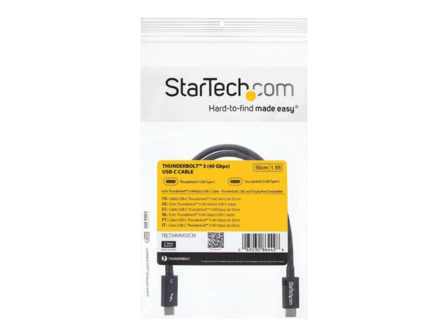 Provide four times the data transfer speed of any other cable type, enable dual 4K 60Hz video, and power your devices with a single cable. This Thunderbolt 3 (40Gbps) cable lets you connect to any Thunderbolt 3 port (USB-C) to deliver video and data to your Thunderbolt, USB and DisplayPort devices. Plus, the cable can provide power for charging your devices, and you can link up to six Thunderbolt 3 devices as part of a daisy-chained connection.