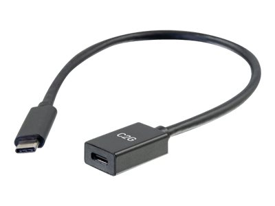 C2G 1ft USB-C to C 3.1 (Gen 2) Male to Female Extension Cable (10Gbps) - USB-forlengelseskabel - USB-C (hann) til USB-C (hunn) - USB 3.1 Gen 2 / Thunderbolt 3 - 3 A - 30 cm - formstøpt - svart