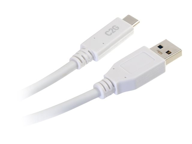 C2G 3ft USB C 3.0 to USB Cable - USB C to USB A - M/M - USB-kabel - USB-type A (hann) til USB-C (hann) - USB 3.1 - 30 V - 3 A - 91.4 cm - hvit