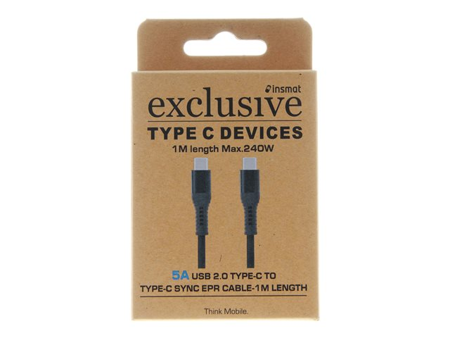 Insmat - USB-kabel - 24 pin USB-C (hann) til 24 pin USB-C (hann) - USB 2.0 - 48 V - 5 A - 1 m - USB Power Delivery (240 W), up to 480 Mbps - svart