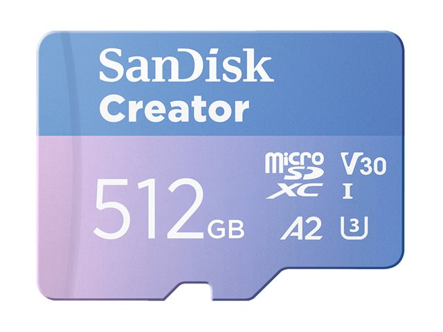 The SanDisk Creator microSDXC UHS-I memory card offers a robust storage solution with a capacity of 512 GB, perfect for storing high-resolution content. With a read rate of 190 MB/s and a write rate of 130 MB/s, this card ensures smooth performance for video recording and app usage. Its compatibility is versatile, making it suitable for various devices, allowing creators to capture and transfer files with ease. Additionally, the included microSDXC to SD adapter adds convenience for using the card in a wide range of devices. This memory card is designed to withstand extreme conditions, making it ideal for adventurers and professionals alike.
