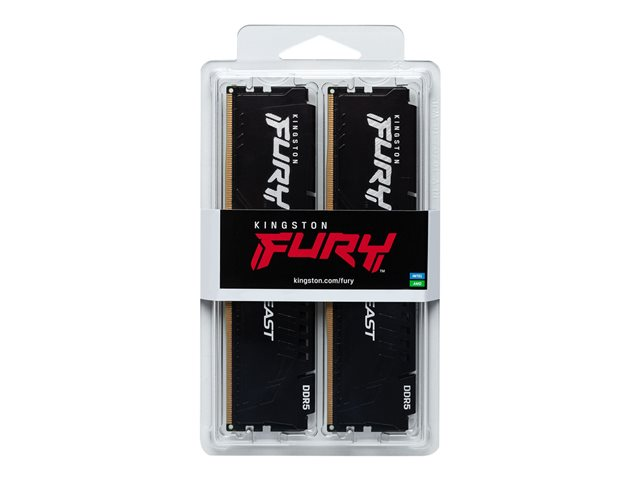 Kingston FURY Beast - DDR5 - sett - 64 GB: 2 x 32 GB - DIMM 288-pin - 6000 MT/s / PC5-48000 - CL30 - 1.4 V - ikke-bufret - on-die ECC - svart