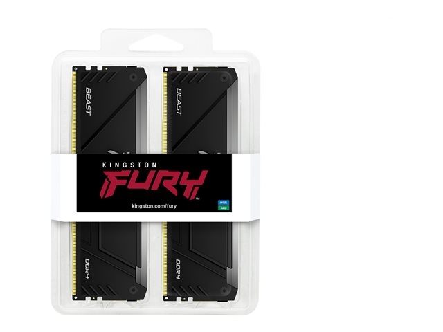 Kingston FURY Beast RGB delivers a boost of performance and style with high speeds, aggressive styling and RGB lighting that runs the length of the module for smooth and stunning effects. It features Plug-and-Play automatic overclocking at high speeds and is both Intel XMP-ready and ready for AMD Ryzen. FURY Beast RGB stays cool with its stylish, low-profile heat spreader.