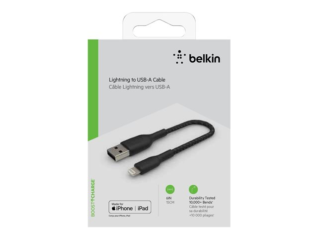 Belkin BoostCharge - Lightning-kabel - Lightning hann til USB hann - 15 cm - svart CAA002BT0MBK