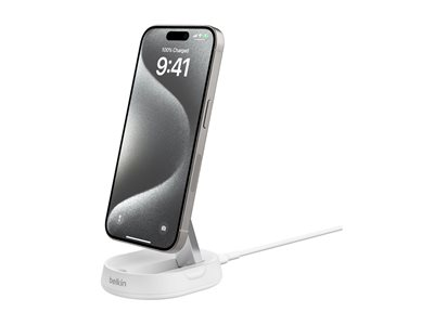 Belkin BoostCharge Pro - Trådløst ladestativ - magnetisk, konvertibel, med Qi2 - 15 watt - 3 A - Fast Charge - hvit WIA008BTWH