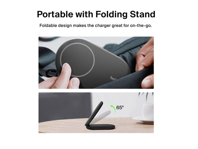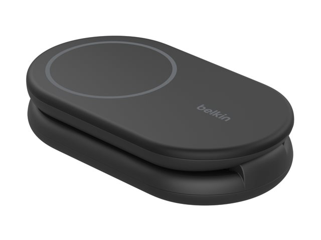Belkin BoostCharge - Trådløst ladestativ - magnetisk, sammenleggbar, med Qi2 + AC-strømadapter - 15 watt - 3 A - Fast Charge, Power Delivery 3.1 - svart WIB007VFBK