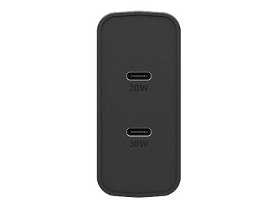 OtterBox Wall Charger - Strømadapter - 50 watt - 3 A - PD 3.0, USB BC 1.2 - 2 utgangskontakter (USB-C) - svart glimt