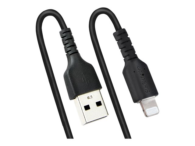 StarTech.com 50cm (20in) USB to Lightning Cable, MFi Certified, Coiled iPhone Charger Cable, Black, Durable and Flexible TPE Jacket Aramid Fiber, Heavy Duty Coil Charging Cable - Rugged USB Lightning Cable - Lightning-kabel - USB hann til Lightning hann - 50 cm - svart - rullet sammen