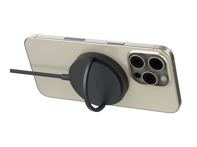 The ZAGG mophie magnetic wireless charger delivers efficient charging for your devices with a sleek and compact design. Supporting Qi 2 wireless charging standards, this wireless charging pad is compatible with cellular phones and wireless earbuds, ensuring that your essential devices remain powered throughout the day. The 15 watt power output enables a quick charge, allowing you to get back to what matters most without delay. With an aluminum body and magnetic alignment, charging has never been more convenient. Additionally, the built-in kickstand adds versatility to your charging routine, while the silicone cable wrap helps keep your setup organized and tidy.