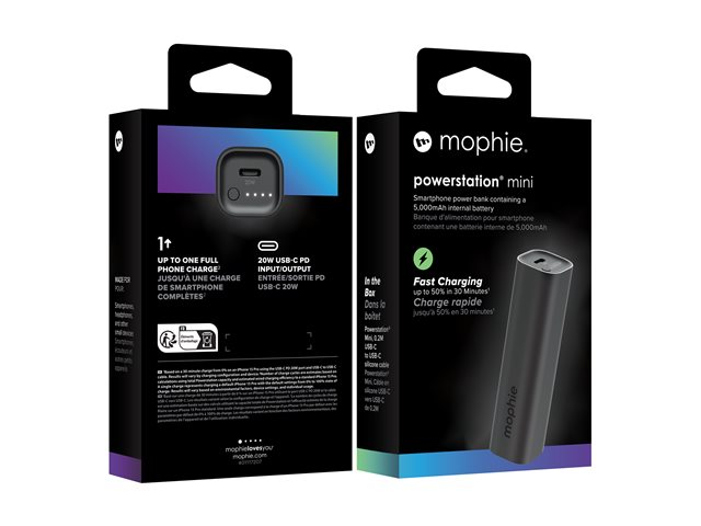 mophie powerstation mini - Strømbank - 5000 mAh - 20 watt - PD (24 pin USB-C) - på kabel: USB-C - svart 401117207