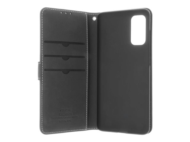 Insmat Exclusive Flip Case - Lommebok for mobiltelefon - ekte skinn, papir, kartong, aluminiumsfolie - svart - for Samsung Galaxy S20, S20 5G 650-2843