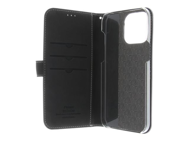 Insmat Exclusive - Lommebok for mobiltelefon - ekte skinn, polykarbonat, kartong+papir+aluminiumsfolie, bomullssting - hvit - for Apple iPhone 15 Pro Max 650-3191