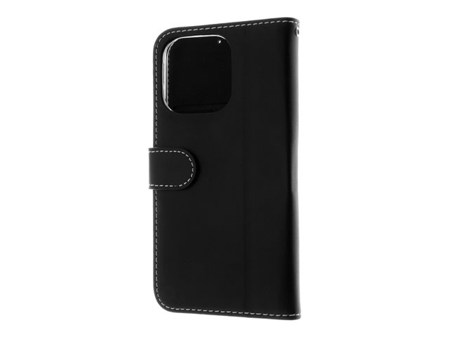 Insmat Exclusive - Lommebok for mobiltelefon - ekte skinn, kartong+papir+aluminiumsfolie - svart - for Apple iPhone 15 Pro 650-3186