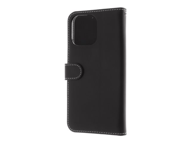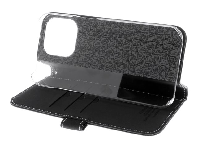 Insmat Exclusive - Lommebok for mobiltelefon - lær, kartong+papir+aluminiumsfolie, polykarbonat (PC) - svart - for Apple iPhone 15 Pro Max 650-3187