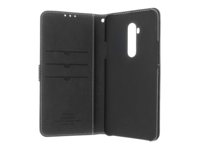 Insmat Exclusive Wallet - Lommebok for mobiltelefon - polyuretan, polykarbonat, bomull, bronse - svart - for OnePlus 7T Pro 650-2821
