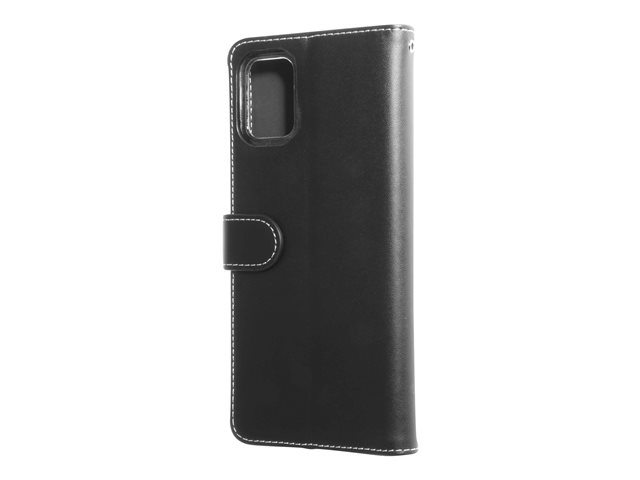 Insmat Flip Case - Lommebok for mobiltelefon - ekte skinn, papir, kartong, polykarbonat, aluminiumsfolie - svart - for Samsung Galaxy A51 5G