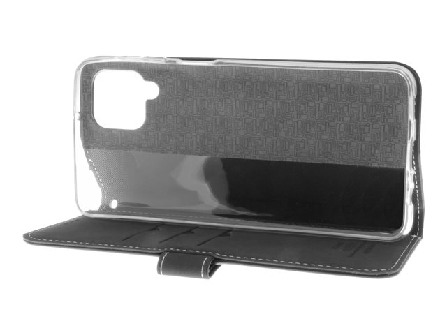Insmat Flip Case - Lommebok for mobiltelefon - ekte skinn, termoplast-polyuretan (TPU) - svart - for Samsung Galaxy A12