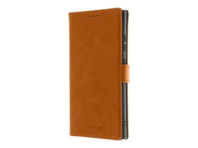 Insmat Premium - Lommebok for mobiltelefon - ekte skinn, kartong+papir, termoplast-polyuretan (TPU), polyuretan - brun - for Samsung Galaxy S24 Ultra 650-3229