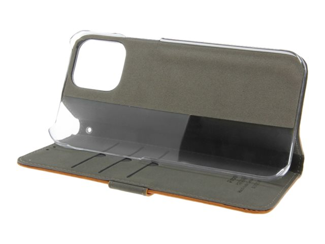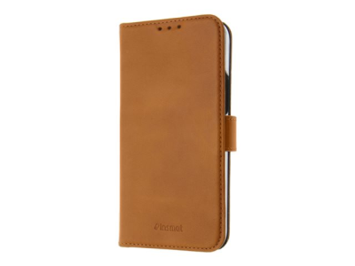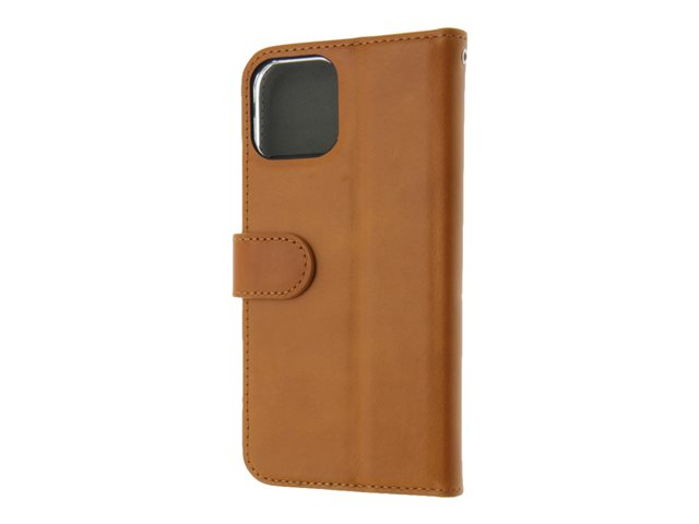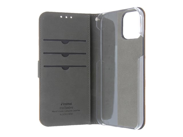 Insmat Premium - Lommebok for mobiltelefon - papir, kartong, lær, polykarbonat, bomull, aluminiumsfolie, bronse - brun - for Apple iPhone 12, 12 Pro 650-2896