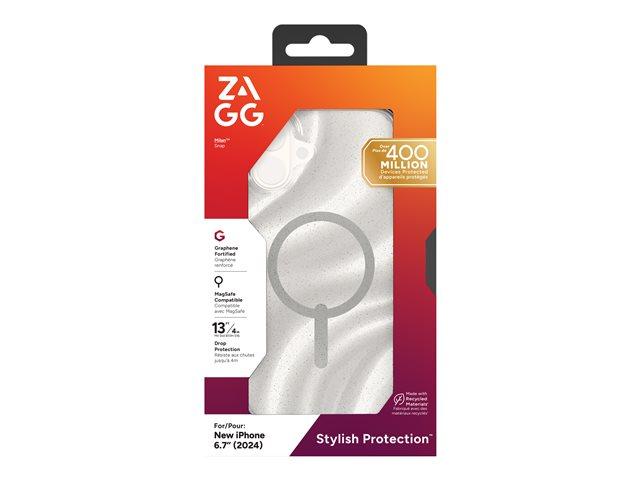 The ZAGG Milan Snap carrying case offers reliable protection for your devices, engineered with a lightweight graphene material that ensures durability and ease of use. This back cover is designed with wireless charging support, allowing for seamless functionality without the need to remove the case. Its slim design and textured edges provide a non-slip grip, making it comfortable to hold while adding a touch of style. Additionally, this case meets the MIL-STD 810G 516 standards for drop protection, ensuring that your device is safeguarded against impacts and falls.