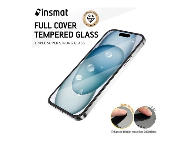 The Insmat screen protector provides protection for cellular phones, crafted from high-quality tempered glass with a 9H rating for impact resistance. This product features an easy installation process, complemented by a No-DUST installation frame and includes wet and dry cloths for a clean application. Designed to be full cover, it offers a dirt repellent coating that keeps the screen clear and enhances usability with its oleophobic surface that resists fingerprints and smudges. With triple reinforcement, this screen protector guards against everyday wear and tear and minimizes the risk of fractures from accidental drops. The sleek black frame seamlessly integrates with any device, ensuring that your phone maintains its appearance while benefiting from protection. This screen protector is an accessory for anyone looking to extend the life of their cellular device.