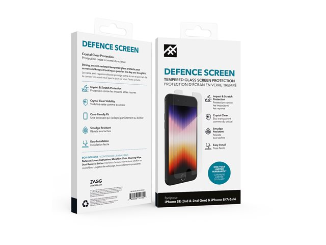 ZAGG InvisibleShield Defense - Skjermbeskyttelse for mobiltelefon - glass - for Apple iPhone 6, 6s, 7, 8, SE (2nd generation) 300105530