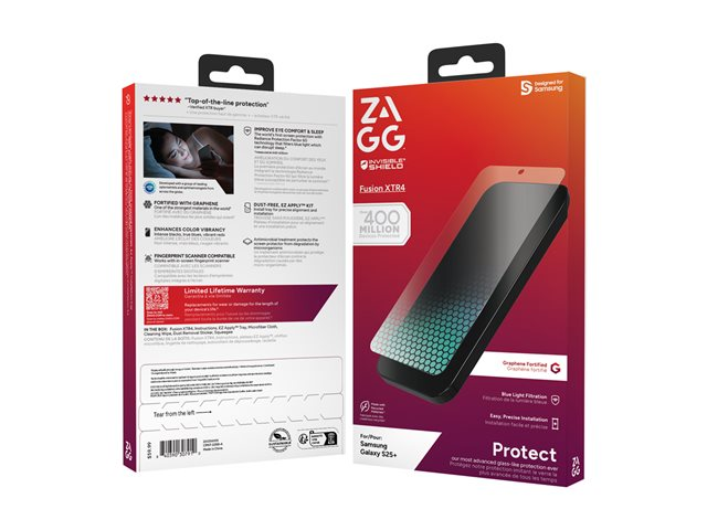 Included in the package is a dust removal adhesive strip and an EZ Apply tray, making installation straightforward. With FSC and TUV Rheinland Certified Green Product standards, this screen protector is an eco-friendly choice that does not compromise on quality or performance. Opt for the ZAGG InvisibleShield Flex XTR4 for protection that complements your device.
