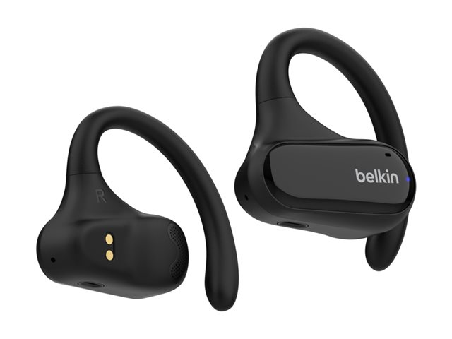 The Belkin SoundForm ClearFit earphones deliver a listening experience with Environmental Noise Cancellation technology, ensuring clarity in audio even in noisy environments. Engineered for versatility, the earphones feature a robust wireless connection via Bluetooth 5.3, allowing pairing with various devices, including iPhone, Android phones, and computers. They provide a comfortable over-the-ear mount with open ear design, making them ideal for long periods of wear while offering an impressive max sound pressure of 100 dB for audio enjoyment. The built-in microphone enables clear calls and voice assistance, making them suited for on-the-go lifestyles.