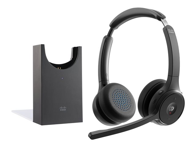 Cisco Headset 722 - Hodesett - on-ear - Bluetooth - trådløs - karbon sort - med ladestativ - Cisco Webex Certified HS-WL-722-BUNAS-C
