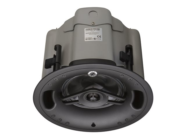 The Saros Express ICE6T model is a 2-way in-ceiling speaker featuring a 6-1/2 inch woofer and wide-dispersion, horn-loaded 1 inch dome tweeter. A built-in 30 Watt multi-tap transformer allows for use with 70 and 100 volt distributed speaker systems. Power handling at 8 ohms is 60 watts (program), with a frequency response from 75 Hz to 20 kHz (±3 dB).
