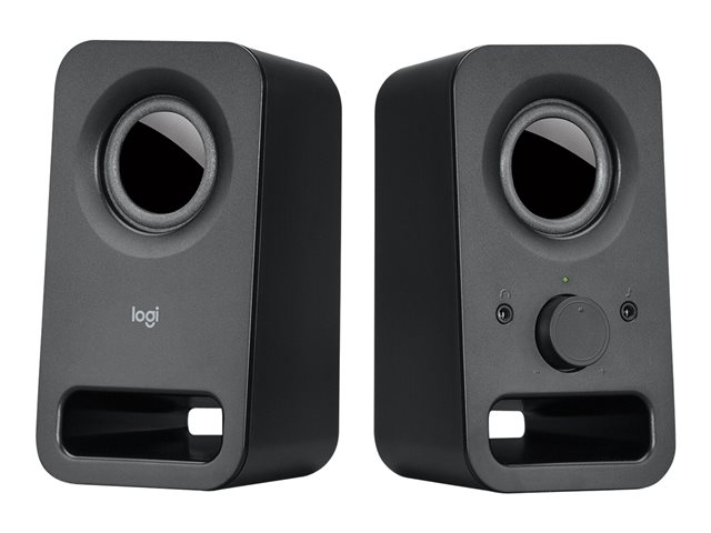 Disse stereohøyttalerne har klar lyd og et kompakt design som er ideelt for små rom. Høyttaleren på høyre side gir deg tilgang til alle kontroller, inkludert hodetelefonkontakten.