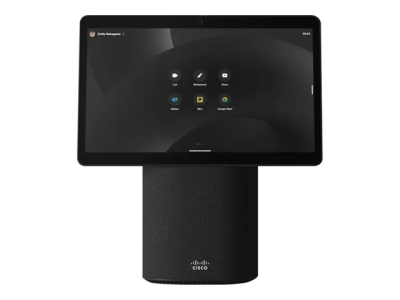 The Webex Desk Mini is designed with an integrated handle which makes it easy to move around from one room to another. It also comes equipped with privacy features such as noise removal, video backgrounds and easy access to in-meeting controls - so you can always show up and look professional in meetings even from your kitchen or living room.