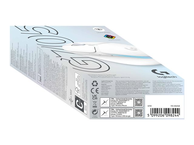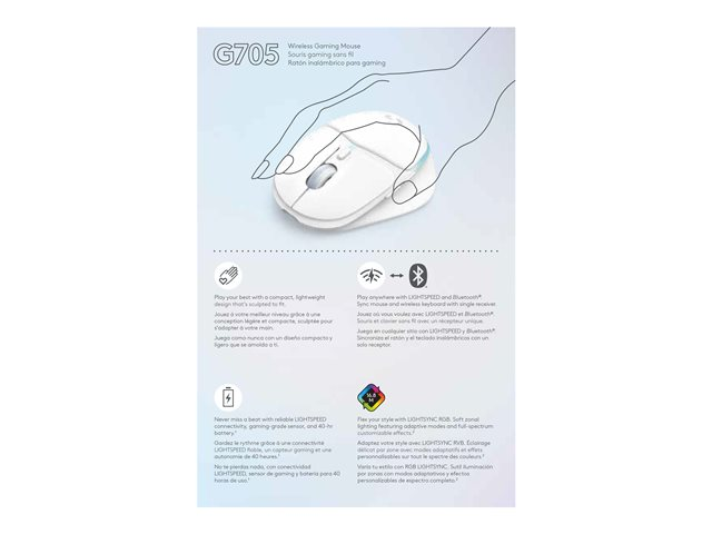 Logitech G G705 - Mus - små hender - 6 knapper - trådløs - Bluetooth - USB Logitech LIGHTSPEED-mottaker - hvit 910-006367