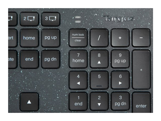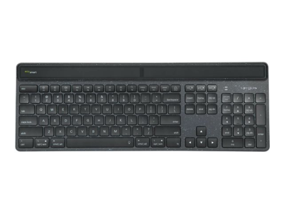 The Targus Sustainable Energy Harvesting EcoSmart Nordic-language keyboard combines Bluetooth and advanced solar technologies with post-consumer recycled materials in an ecofriendly, full-size keyboard. Manufactured from up to 85% recycled material and infused with antimicrobial protection, this keyboard helps to prevent the growth of micro-organisms, while helping to protect the environment - even its packaging is recycled. It's primarily powered by solar cells optimized to harvest light from a variety of light conditions (including indoor artificial lighting) and connects to up to 3 devices using Bluetooth SoC, which means its extremely low-power capabilities makes it 3 to 4 times more power-efficient than other Bluetooth keyboards. And, this keyboard features Targus DefenseGuard antimicrobial protection. Unlike topically applied sprays, this DefenseGuard keyboard is infused with antimicrobial additives that don't wear or wash off, and works continuously for the life of the product.