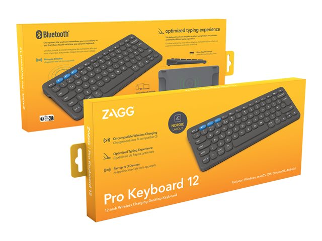 From the ergonomic design and spacing to the keystroke length and resistance, each ZAGG Pro Keyboard is engineered to reduce typing fatigue and provide a fast, comfortable, and efficient typing experience. Charge the ZAGG Pro Keyboards on a Qi-compatible wireless charging pad to ensure uninterrupted typing when you need it most. Qi charging eliminates the risk of a dead battery and keeps your workspace tidy and free from unnecessary cables. Users can also charge with the included Type-C cable. You can pair the ZAGG Pro Keyboards with up to three devices to seamlessly toggle between a phone, tablet, or computer from one keyboard. The keyboards have a Li-polymer battery that allows for three months of use before it needs recharging.