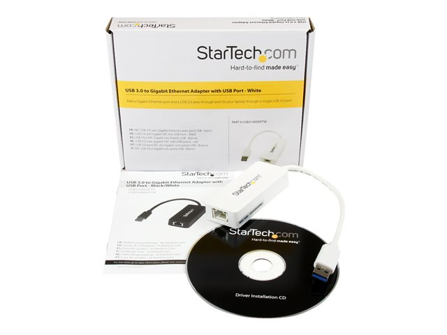 StarTech.com USB 3.0 to Gigabit Ethernet Adapter NIC w/ USB Port (White) - USB 3.0 NIC - 10/100/1000 Mbps USB 3.0 LAN Adapter (USB31000SPTW) - Nettverksadapter - USB 3.0 - Gigabit Ethernet - hvit USB31000SPTW