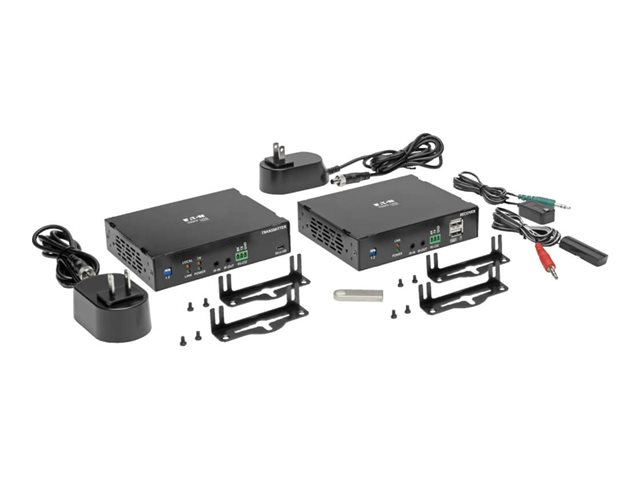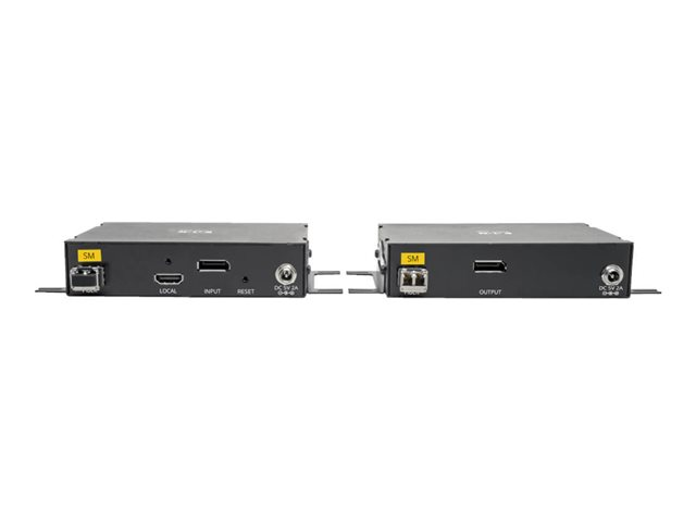 The included transmitter and receiver units work right out of the box with no software required. Mounting hardware is included for installing the units on walls, poles or 19-inch racks. Connect the transmitter to the source and the receiver to the display with DisplayPort cables (such as Tripp Lite's P580-Series). Then, connect the two units using a duplex singlemode LC fiber cable (Tripp Lite N520-Series). Connect an optional display to the transmitter's local HDMI output to monitor the image connected to the receiver up to 6.2 miles away.