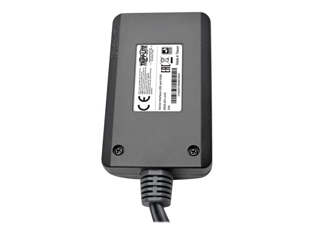 The B055-001-UHD NetDirector HDMI USB Server Interface Unit connects a server, computer or CAC reader with HDMI and/or USB ports to a Tripp Lite B064-IPG Series KVM switch with v1.0.071 or later firmware installed. Using Cat5e/6 cabling, you can locate the KVM switch up to 164 feet (50 meters) from the server.
