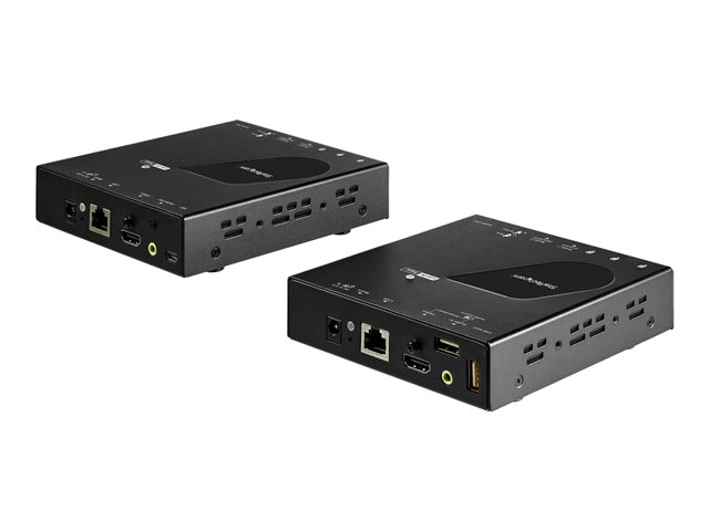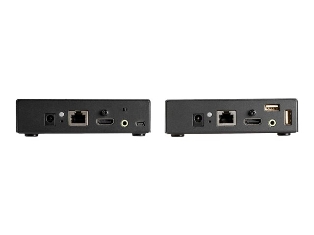 This HDMI KVM extender kit lets you use a keyboard, mouse and monitor to remotely control any computer over your IP-enabled local area network (LAN). Combined with a KVM switch, the KVM console extender can be used with multiple computers. The extender features four USB ports that enable you to connect other USB devices, in addition to your keyboard and mouse.