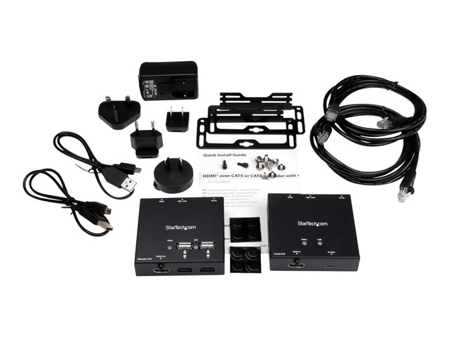 Extend 1080p video and four USB peripheral devices to a remote location. This HDMI extender kit lets you transmit your 1080p HD video source to your remote HDMI display at distance of up to 165 ft. away (50 m) using shielded CAT6 cabling. The extender features a built-in 4-port USB 2.0 hub that also lets you connect four remote USB peripheral devices at your display location.