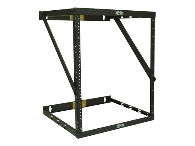 The SRWO12UHD SmartRack 12U Heavy-Duty Flat-Pack Low-Profile Switch-Depth Wall-Mount 2-Post Open Frame Rack stores and organizes EIA-standard 19-inch rack equipment compatible with 2-post mounting in network wiring closets, back offices and other secure areas with limited floor space where a locked enclosure is not required. Constructed from heavy-duty steel with a durable black powder-coated finish, the rack has a maximum load capacity of 200 pounds. The open frame design allows unrestricted access for installing, configuring and servicing equipment and cabling. The rack is simple to assemble and mount to the wall. Threaded 12-24 mounting holes and numbered rack spaces make equipment installation easy. The vertical mounting rails accommodate equipment up to 18 inches deep, such as network switches and patch panels. Assembly and equipment-mounting hardware is included.